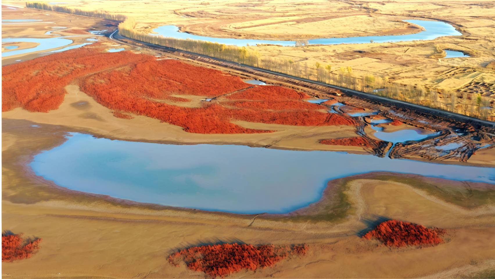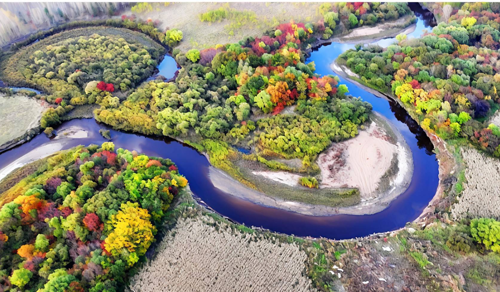 ทิวทัศน์ฤดูใบไม้ร่วงอันงดงามของแม่น้ำในตำบลไห่หลุน เมืองสุยฮว่า มณฑลเฮยหลงเจียง (ภาพ หลิว เสี้ยนอู่หลังผ่านพ้นช่วง
