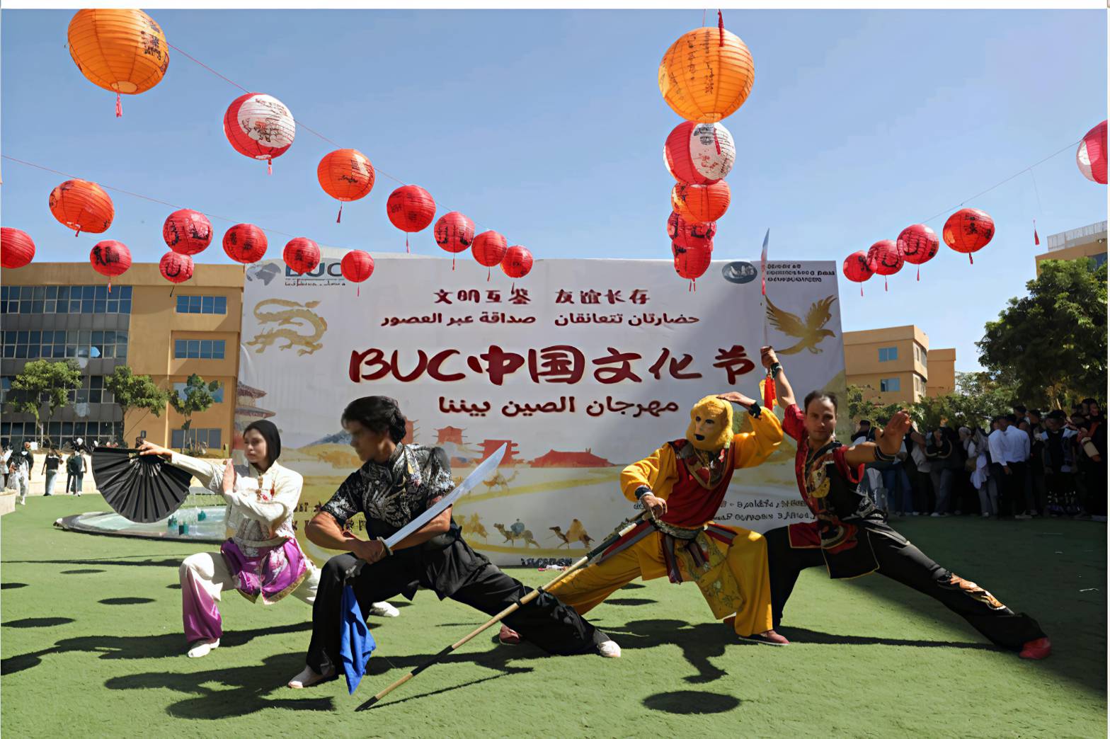บนเวทีการสาธิตศิลปะป้องกันตัวจีนในงานเทศกาลวัฒนธรรมจีนที่มหาวิทยาลัยบัดร์ ไคโร อียิปต์ (ซินหัว)หลู ชุนเซิง อัครราชทูตที่ปรึกษาสถานทูตจีนประจำอียิปต์ ระบุว่า ความนิยมในการศึกษาภาษาจีนช่วยให้เยาวชนอียิปต์เข้าใจ รัก และหันมาสนใจศึกษาวัฒนธรรมจีนมากขึ้นมักดี อาเมอร์ อดีตเอกอัครราชทูตอียิปต์ประจำสาธารณรัฐประชาชนจีน กล่าวว่า เทศกาลเช่นนี้เป็นดั่ง “สะพานเชื่อมสองอารยธรรมโบราณ” และช่วยเพิ่มพูนความเข้าใจซึ่งกันและกันอัชราฟ เอล-ชีฮี อธิการบดีมหาวิทยาลัยบัดร์ กล่าวว่า ภายใต้ข้อริเริ่ม “หนึ่งแถบ หนึ่งเส้นทาง” ความร่วมมือระหว่างจีน-อียิปต์ กำลังขยายตัวทั้งในด้านโครงสร้างพื้นฐาน การค้า การลงทุน และการศึกษา และทั้งสองประเทศ “ไม่ใช่แค่พันธมิตร แต่เป็นสหายที่ร่วมเดินหน้าไปด้วยกัน”ที่มา People’s Daily Online