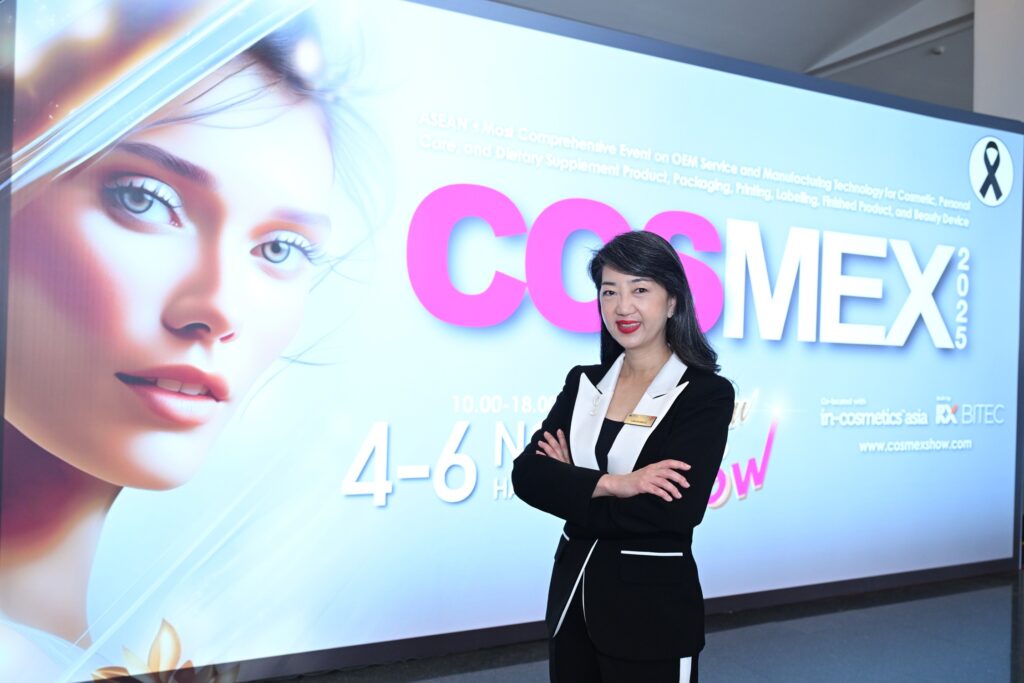 ด้านนางวราภรณ์ ธรรมจรีย์ กรรมการผู้จัดการ อาร์เอ็กซ์ ไบเทค (RX BITEC) ในฐานะผู้จัดงานCOSMEX กล่าวว่า “งาน COSMEX เป็นเวทีสำคัญที่ช่วยขับเคลื่อนการเติบโตของอุตสาหกรรมความงามในหลายมิติ ไม่ว่าจะเป็นการเปิดโอกาสให้ผู้ประกอบการได้พบกับนวัตกรรมใหม่ๆ จากต่างประเทศ การสร้างเครือข่ายธุรกิจทั้งในและต่างประเทศ รวมถึงการส่งเสริมแบรนด์ในภูมิภาคอาเซียนให้สามารถแข่งขันในตลาดโลกได้อย่างมั่นใจ COSMEX จึงไม่ได้เป็นเพียงแค่งานแสดงสินค้า แต่เป็นเวทีกำเนิดและบ่มเพาะแบรนด์ให้เติบโตอย่างมีคุณภาพและมีเอกลักษณ์ ในแบบเฉพาะของตน อีกทั้งยังเป็นจุดเชื่อมโยงผู้ประกอบการในอาเซียนและอีกหลายประเทศ เป็นพื้นที่ที่แบรนด์จากประเทศเพื่อนบ้านได้มาแลกเปลี่ยน เรียนรู้ และร่วมกันสร้างมาตรฐานใหม่ของ ASEAN Beauty ที่มีความหลากหลายแต่แข็งแรงในเวทีโลกทำให้บทบาทสำคัญของงานนี้ คือการผลักดันให้ภูมิภาคของเรากลายเป็นศูนย์กลางด้านความงามที่มีอัตลักษณ์และศักยภาพสูง”