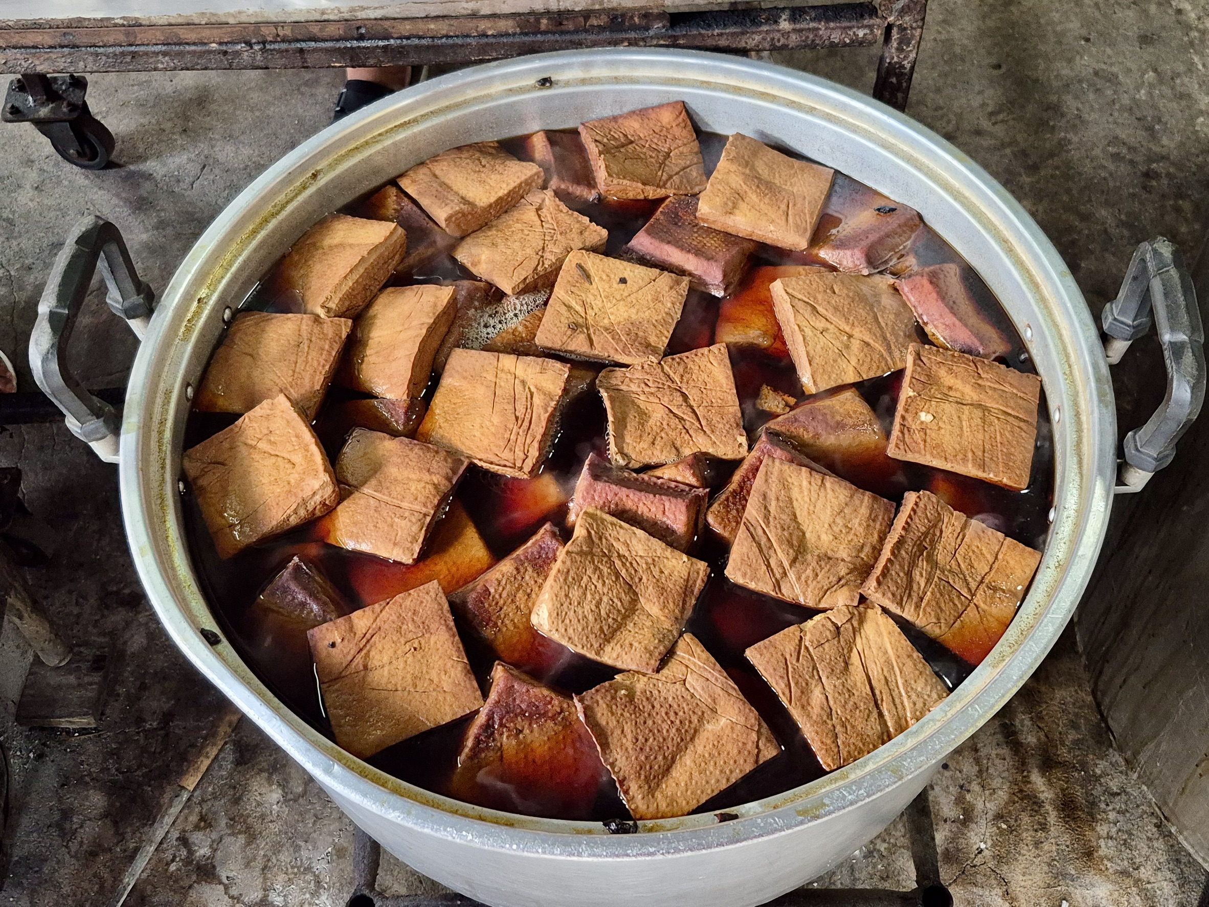 อิ่มท้องกันแล้วก็ถึงเวลาตามล่าหาวัตถุดิบ ของดีของขึ้นชื่อของราชบุรี กับ เต้าหู้ดำ ที่ต้ม 3 วัน 3 คืน เต้าหู้ที่ทำจากถั่วเหลือง 100% ไม่ใส่แป้ง ต้มพะโล้ เนื้อเนียนเหมือนคัสตาร์ด สูตรพิเศษของชาวจีนแต้จิ๋วแห่งเมืองโพธารามจังหวัดราชบุรี ขายมานานกว่า 57 ปี