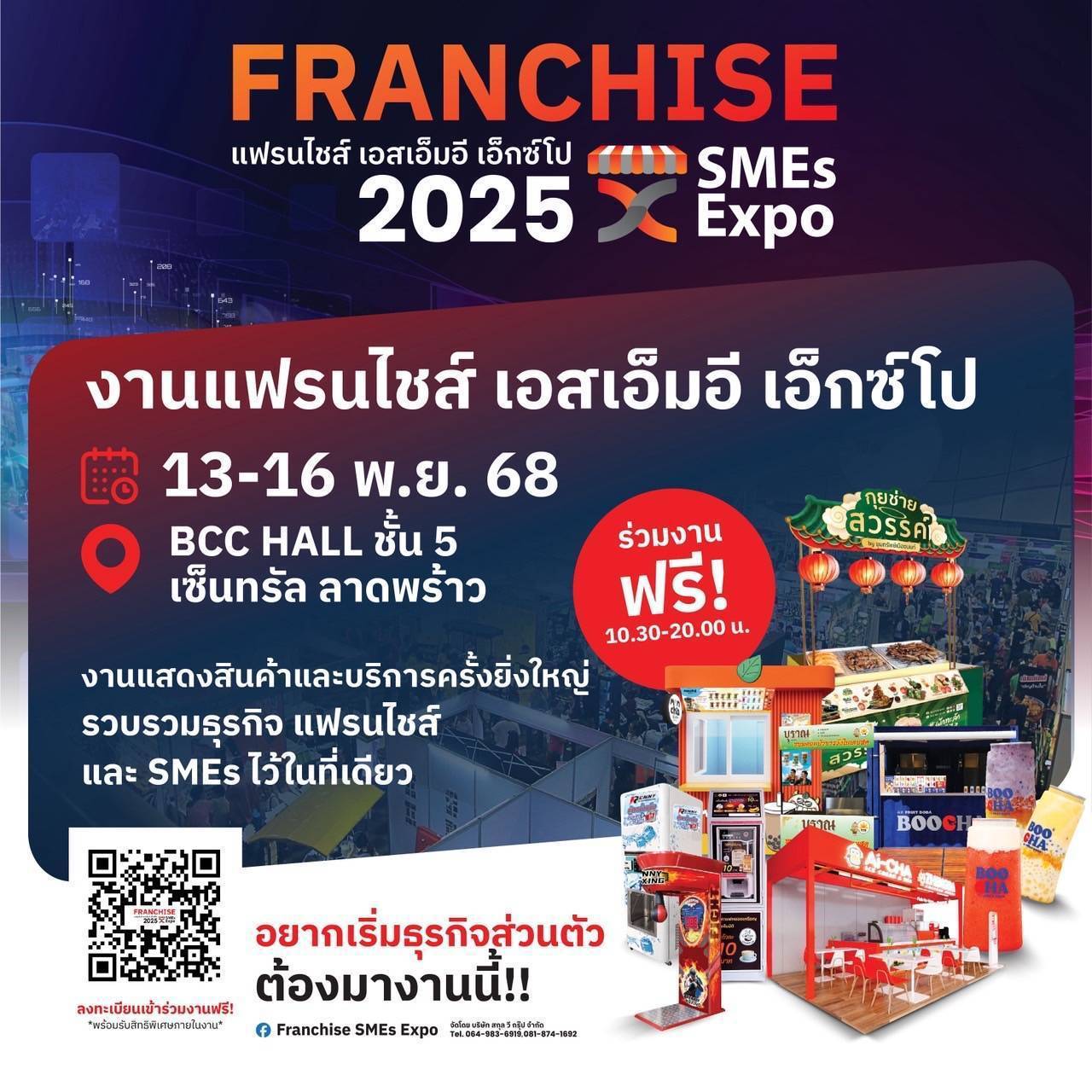 กรุงเทพ , 13 พฤศจิกายน 2568 – ปนัดดา แสงธรรมชัย CEO และกรรมการผู้จัดการ บริษัท สกุลวี กรุ๊ป จำกัด เชิญชวนผู้ที่อยากเริ่มต้นธุรกิจส่วนตัว เข้าร่วมงาน “แฟรนไชส์ เอสเอ็มอี เอ็กซ์โป 2025” (Franchise SMEs Expo 2025) มหกรรมธุรกิจแฟรนไชส์ครั้งใหญ่ส่งท้ายปี ระหว่างวันที่ 13–16 พฤศจิกายน 2568 ณ บีซีซี ฮอลล์ ชั้น 5 เซ็นทรัล ลาดพร้าว กรุงเทพฯ ตั้งแต่เวลา 10.30 – 20.00 น. เข้าชมงาน ฟรี!งานนี้รวบรวมธุรกิจแฟรนไชส์คุณภาพกว่า 100 บูธ ครบทุกหมวด ทั้งแฟรนไชส์อาหาร เครื่องดื่ม บริการ เครื่องหยอดเหรียญ ธุรกิจรับจ้างผลิต (OEM) และที่ปรึกษาธุรกิจ พร้อมกิจกรรมเสวนาพิเศษจากผู้เชี่ยวชาญในแวดวงแฟรนไชส์และ SMEs ที่จะมาแบ่งปันแนวคิด กลยุทธ์ และโอกาสในการสร้างธุรกิจให้ประสบความสำเร็จไฮไลต์ภายในงานรวมแฟรนไชส์ชื่อดัง อาทิ AI CHA, ZHENGDA, Shuyi, BOOCHA FRUIT BOBA, Moncha, Snowtee, Cat in the forest cafe, Sho ramen, เส้นซ่าห์, ขนมดอกบัวชาววังใบเตยสด, GUGU Chicken, ขาหมูพระนคร, เนื้อทองคำ, Spirit of Laenkha และอีกมากมายโซน แฟรนไชส์หมวดบริการและร้านสะดวกซัก เช่น Tops Daily, LAUNDRY STATION, รวมถึงเครื่องใช้ไฟฟ้าและผลิตภัณฑ์เพื่อธุรกิจจาก LG, BiOCHEF, Cowayหมวดเครื่องหยอดเหรียญอัตโนมัติ เช่น COFFEE STARTUP, เรนนี่ (ตู้กดน้ำแข็งอัตโนมัติ) และ เครื่องต่อยมวยหยอดเหรียญหมวดธุรกิจ OEM ได้แก่ HOMEMATT โรงงานรับผลิตหมอนและที่นอนยางพาราหมวดสินเชื่อและที่ปรึกษาธุรกิจ จาก ธนาคารซีไอเอ็มบีไทย และผู้เชี่ยวชาญ Business Coach & Consultantนอกจากนี้ ยังมีโซนพิเศษ “วันเดอร์ มู” ที่รวมนักพยากรณ์ชื่อดังจากสถาบันพยากรณ์ศาสตร์ โดย อาจารย์ลักษณ์ ฟันธง มาให้คำแนะนำเสริมดวงการค้าและธุรกิจ รับปีใหม่ 2569กำหนดการเสวนาฟรีภายในงานวันศุกร์ที่ 14 พ.ย. 68 เวลา 17.00 น.หัวข้อ “Brand Mascot Power กลยุทธ์เชื่อมใจลูกค้าด้วยพลังตัวการ์ตูน”โดย สัญญา เลิศประเสริฐภากร ครีเอทีฟไดเรกเตอร์จาก ZyloStudio เจ้าของผลงาน “ควายไทยใจซื่อติดลมห้อยเวหา”วันเสาร์ที่ 15 พ.ย. 68 เวลา 16.00 น.“มู..เสริมดวง 12 ราศี ให้ปัง รับปีใหม่” โดย อาจารย์ลักษณ์ ฟันธงวันอาทิตย์ที่ 16 พ.ย. 68 เวลา 14.00 น.“เลือกแฟรนไชส์อย่างนักวิเคราะห์ ไม่ใช่นักเสี่ยงโชค”โดย เศรษฐพงศ์ ผดุงพิสุทธิ์ (CFE) CEO บริษัท จีโนชิส จำกัด มืออาชีพด้านระบบแฟรนไชส์ปนัดดา แสงธรรมชัย กล่าวเพิ่มเติมว่า งานนี้จัดขึ้นเพื่อเปิดโอกาสให้ผู้ที่ต้องการเริ่มต้นธุรกิจส่วนตัว หรือมองหาช่องทางสร้างรายได้เสริม ได้พบกับเจ้าของแฟรนไชส์ตัวจริง พร้อมคำแนะนำตรงจุดจากผู้เชี่ยวชาญ และโอกาสจับคู่ทางธุรกิจจริงภายในงาน ซึ่งคาดว่าจะเกิดมูลค่าการซื้อขายและการลงทุนหมุนเวียนหลายร้อยล้านบาท ช่วยกระตุ้นเศรษฐกิจไทยช่วงปลายปี📍