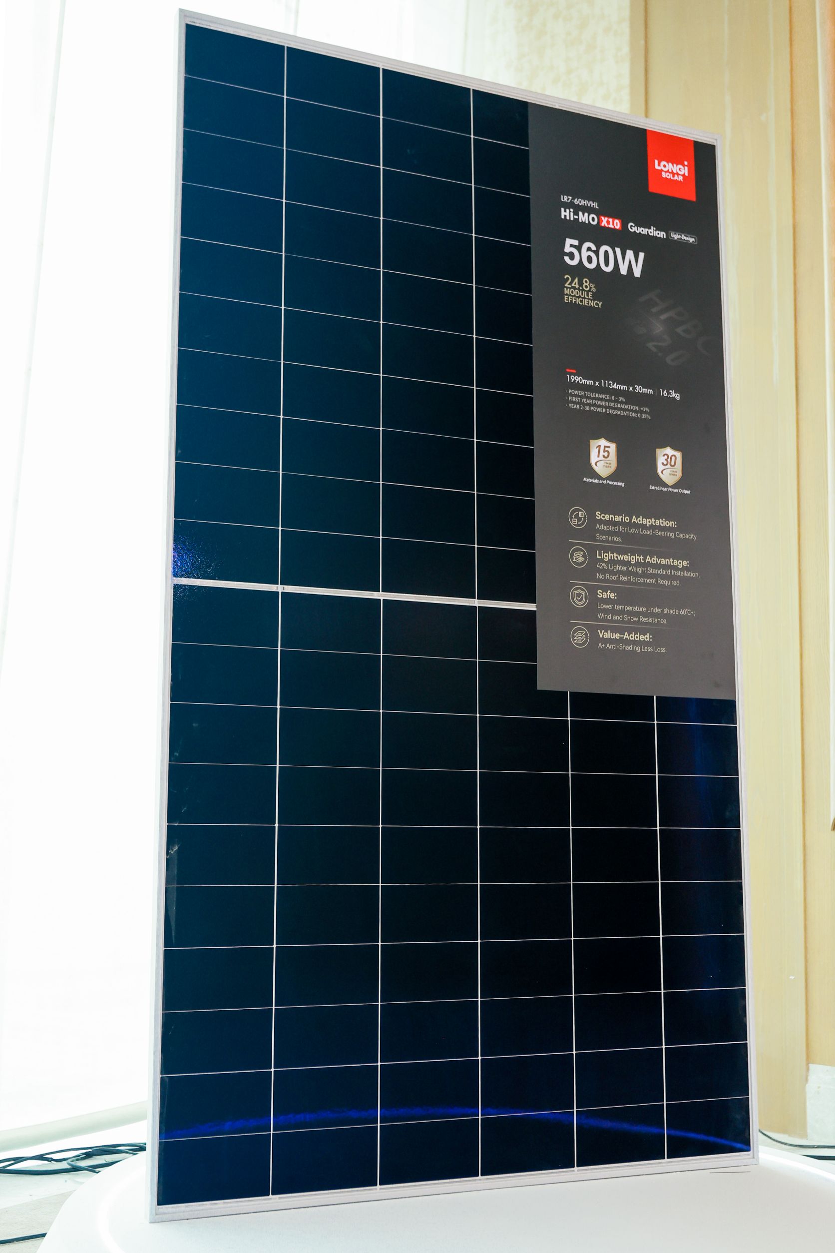 นอกจากนี้ LONGi ได้นำเสนอสิ่งที่เรียกได้ว่า ‘มาตรฐานใหม่’ ของงานติดตั้งบนหลังคา C&I โซลูชันที่รวมทั้งความปลอดภัย น้ำหนักเบา และประสิทธิภาพเข้าด้วยกันอย่างลงตัว นวัตกรรมนั้นก็คือ Hi-MO X10 Guardian Light Design The Ideal Solution for Low-Capacity C&I Roofs โมดูลที่ถูกคิดขึ้นเพื่อแก้ปัญหาจริงของผู้ประกอบการและโรงงานอุตสาหกรรมโดยเฉพาะสถานที่ที่โครงสร้างหลังคามีน้ำหนักรับจำกัด แต่ยังต้องการพลังงานสะอาดระดับสูงสุด