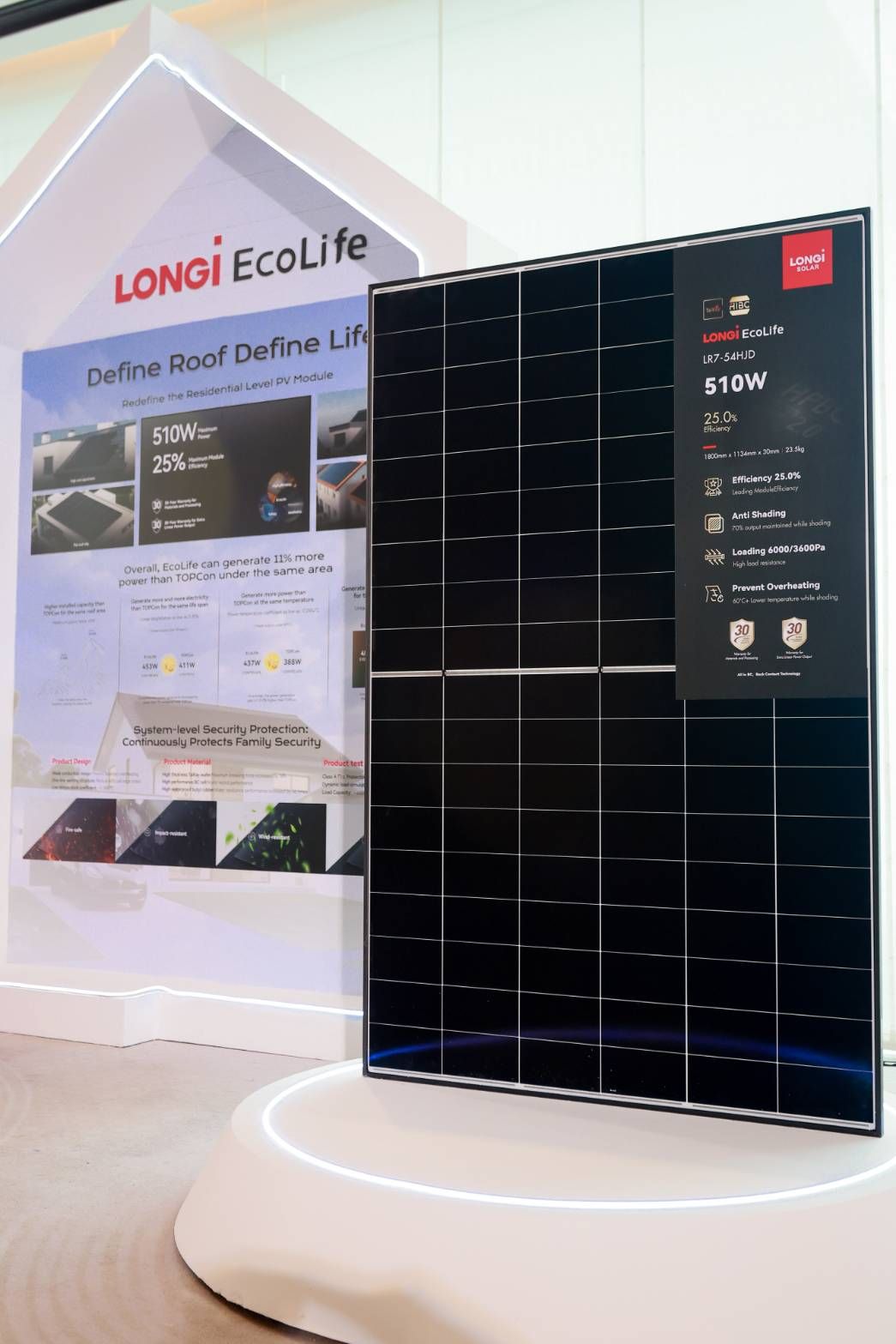 และสุดท้ายกับตลาดพลังงานแสงอาทิตย์ระดับที่อยู่อาศัย (Residential Solar) ในยุคที่ผู้คนให้ความสำคัญกับพลังงานสะอาด ความคุ้มค่า และดีไซน์ที่เข้ากับบ้านสมัยใหม่ LONGi ได้ออกแบบนวัตกรรมที่รวมทั้งประสิทธิภาพ, ความงามและความเข้ากับวิถีชีวิต เข้าไว้ด้วยกันอย่างลงตัว โซลูชันนั้นก็คือ LONGi EcoLife Series – Redefine the Residential Level PV Module ซีรีส์ที่ถูกสร้างขึ้นเพื่อยกระดับมาตรฐาน ของโมดูลโซลาร์เซลล์สำหรับที่อยู่อาศัยอย่างแท้จริง ด้วยเทคโนโลยีที่ไม่เพียงให้พลังงานสูงขึ้น แต่ยังกลมกลืนกับสถาปัตยกรรมของบ้านในทุกสไตล์สวยงาม ทนทาน ปลอดภัย และตอบโจทย์ครัวเรือนยุคใหม่ที่ต้องการพลังงานอัจฉริยะและคุ้มค่าที่สุด