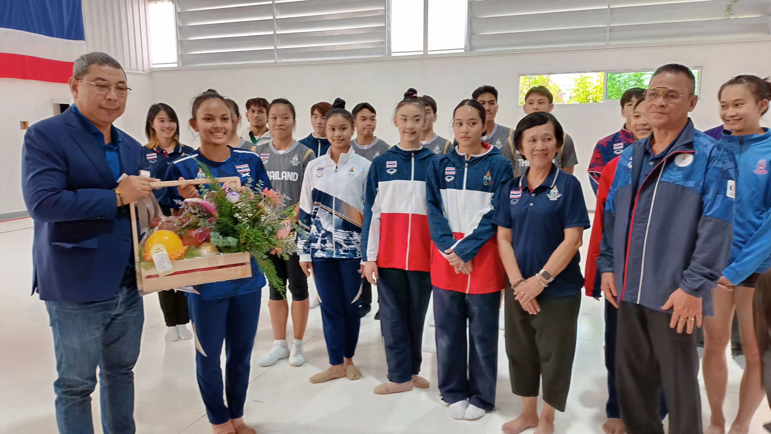 วันที่ 28 พ.ย.68 เวลา 10.00 น. ที่ สโมสรจินตนายิมส์ ซ.เพชรเกษม 81 สถานที่เก็บตัวฝึกซ้อมนักกีฬายิมนาสติกส์ทีมชาติไทย ดร.ณัฏฐ์ ธีรณัฐสุภานนท์ ที่ปรึกษากิตติมศักดิ์คณะกรรมาธิการการท่องเที่ยวและการกีฬาวุฒิสภา , ที่ปรึกษาคณะอนุกรรมาธิการด้านการกีฬา วุฒิสภา , คณะอนุกรรมาธิการศึกษากฏหมายท่องเที่ยวและกีฬา วุฒิสภา และประธานมูลนิธิกองทุนพัฒนาการกีฬา พร้อมด้วย น.ส.สิริรัตน์ ราวินิจ รองเลขาธิการมูลนิธิฯ , น.ส.ปัญจรีย์ ราวินิจ เหรัญญิกมูลนิธิฯ และสื่อมวลชนเข้าเยี่ยมชมการฝึกซ้อมนักกีฬายิมนาสติกส์ทีมชาติไทยชาย-หญิง ชุดสู้ศึกมหกรรมกีฬาซีเกมส์ ครั้งที่ 33 โดยมีนาวาเอกวัลลภ ชื่นเจริญสุข เลขาธิการสมาคมกีฬายิมนาสติกส์แห่งประเทศไทย , นางสาวกนกรัตน์ ตันติกรพรรณ รองเลขาธิการฯ , ผู้ฝึกสอน และนักกีฬายิมนาสติกส์ศิลป์ชาย 3 หญิง 3 นักกีฬายิมนาสติกลีลาประเภทบุคคล 2 คน และนักกีฬายิมนาสติกส์แอโรบิก 4 คนให้การต้อนรับ ส่วนนักกีฬายิมนาสติกลีลากรุ๊ปอีก 4 คนเดินทางไปเก็บตัวฝึกซ้อมที่ประเทศรัสเซีย จากนั้นนาวาเอกวัลลภ เลขาธิการสมาคมกีฬายิมนาสติกฯ เชิญคณะของ ดร.ณัฏฐ์ ธีรณัฐสุภานนท์ และคณะสื่อมวชนชมความสามารถของนักกีฬายิมนาสติกส์ทีมชาติไทยทั้ง 3 ประเภท ซึ่งน้องๆนักกีฬาต่างแสดงศักยภาพอย่างสุดความสามารถจนได้รับเสียงปรบมือเป็นกำลังใจตลอดเวลาของการฝึกซ้อม จากนั้น ดร.ณัฏฐ์ ธีรณัฐสุภานนท์ ได้มอบกระเช้าผลไม้ และเงินสนับสนุนการฝึกซ้อมจำนวน 20,000 บาท พร้อมให้โอวาทแก่นักกีฬายิมนาสติกส์ทีมชาติไทย “โดยขอให้นักกีฬายิมนาสติกส์ทุกคนมีความระมัดระวังในเรื่องของอาการบาดเจ็บจากการฝึกซ้อม ขอให้เก็บพลกำลังและความตั้งใจทั้งหมดไปโชว์พลังแห่งนักกีฬาไทย ในช่วงของการแข่งขัน และตั้งใจทำหน้าที่ตัวแทนประเทศไทยในสนามแข่งขันกีฬาซีเกมส์ เพื่อสร้างชื่อเสียงเกียรติยศให้กับตัวเองและครอบครัว รวมถึงคนไทยทั้งประเทศ ผมในนามของมูลนิธิกองทุนพัฒนาการกีฬา รวมถึงกรรมการบริหารทุกท่าน จะร่วมส่งแรงใจไปเชียร์ให้น้องๆทุกคนประสบความสำเร็จในการแข่งขันกีฬาซีเกมส์เช่นเดียวกับคนไทยทั้งประเทศ ทางด้านนาวาเอกวัลลภ ชื่นเจริญสุข เลขาธิการสมาคมกีฬายิมนาสติกส์ แห่งประเทศไทย กล่าวขอบคุณคณะของ ดร.ณัฏฐ์ ธีรณัฐสุภานนท์ ที่เดินทางมาเยี่ยมชมการฝึกซ้อมและมอบเงินสนับสนุนให้กำลังใจแก่นักกีฬายิมนาสติกส์ทีมชาติไทย พลังบวกจาก ดร.ณัฏฐ์ ธีรณัฐสุภานนท์ และคณะถือเป็นกำลังใจที่ดีกับนักกีฬายิมนาสติกส์ชุดสู้ศึกซีเกมส์ทุกคนอย่างแน่นอน นางสาวกนกรัตน์ ตันติกรพรรณ รองเลขาธิการ