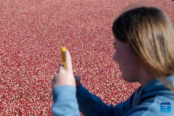 ผลแครนเบอร์รีที่ฐานเพาะปลูกในเมืองฝูหย่วน มณฑลเฮยหลงเจียง (ซินหัว)