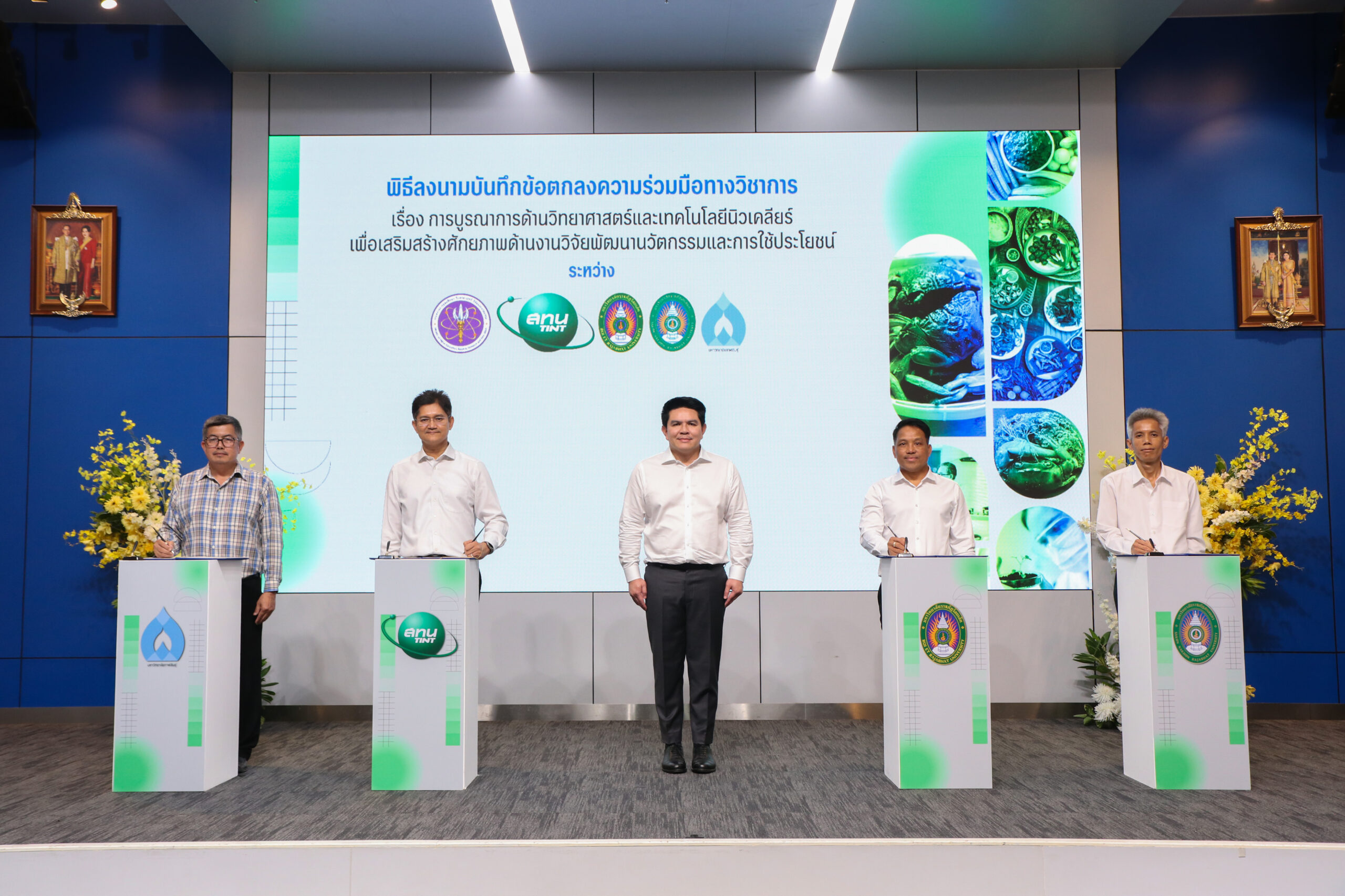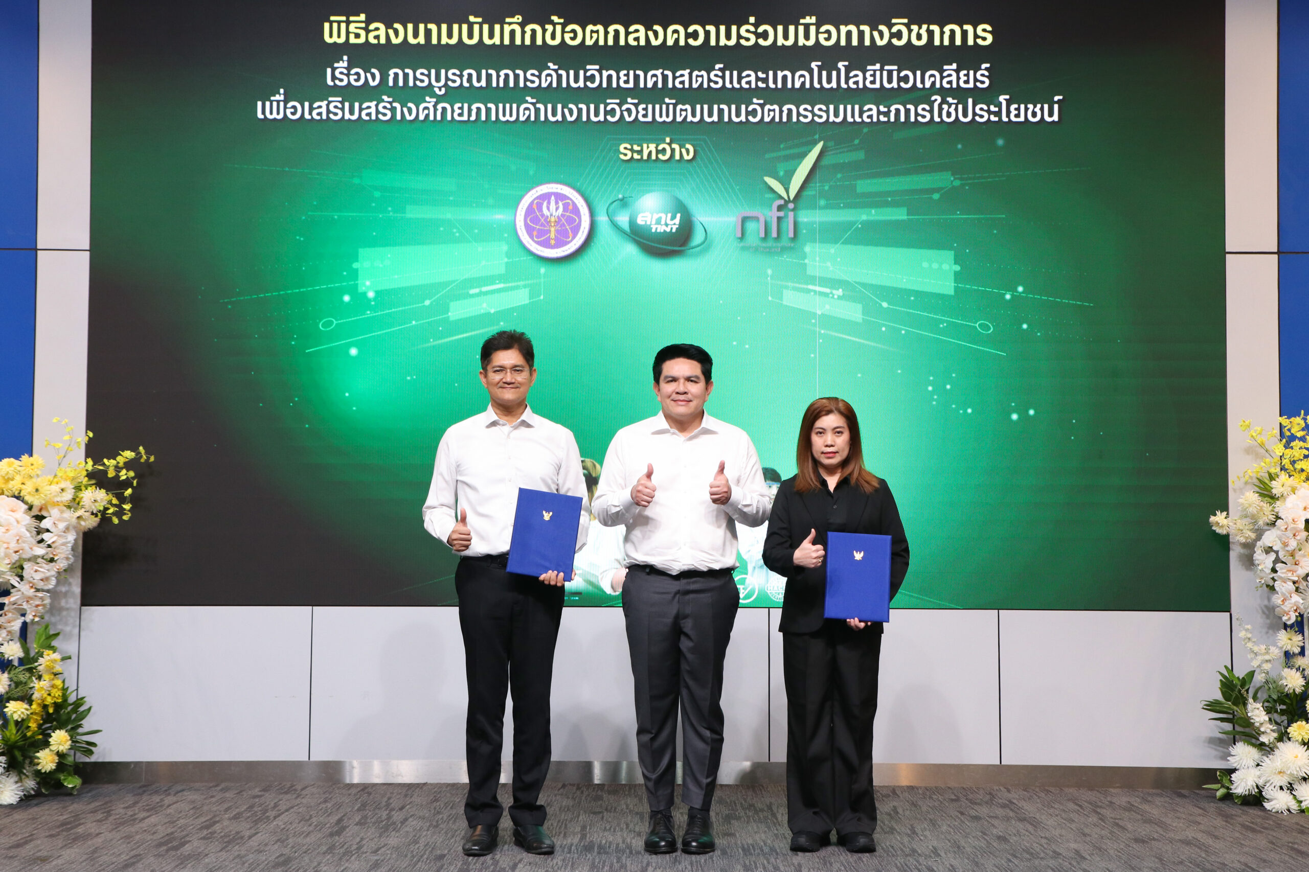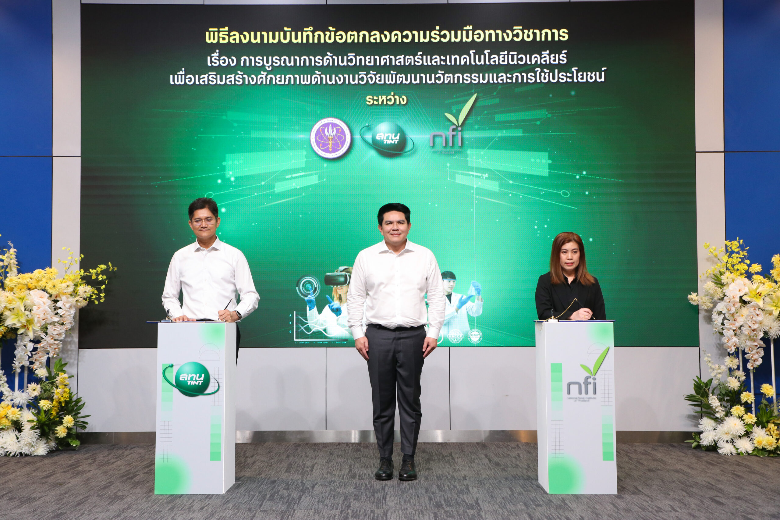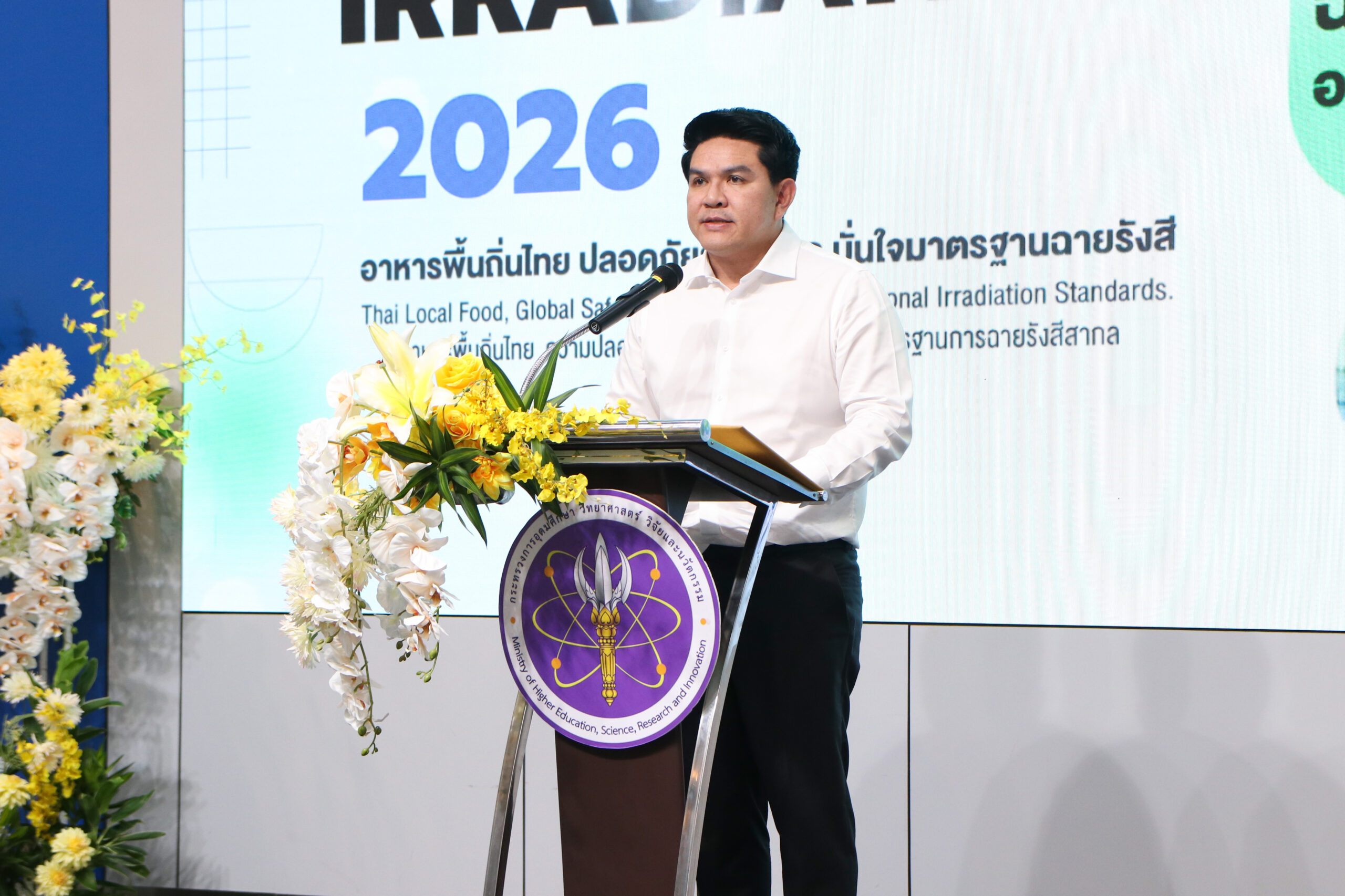 วันนี้ (10 มีนาคม 2569) นายสุรศักดิ์ พันธ์เจริญวรกุล รัฐมนตรีว่าการกระทรวงการอุดมศึกษา วิทยาศาสตร์ วิจัยและนวัตกรรม เป็นประธาน พิธีลงนามบันทึกข้อตกลงความร่วมมือ เรื่อง “ความร่วมมือในการบูรณาการด้านวิทยาศาสตร์และเทคโนโลยีนิวเคลียร์ เพื่อเสริมสร้างศักยภาพด้านงานวิจัย พัฒนานวัตกรรมและการใช้ประโยชน์” ระหว่าง 5 หน่วยงานพันธมิตร ได้แก่ สถาบันเทคโนโลยีนิวเคลียร์แห่งชาติ (องค์การมหาชน) หรือ สทน. สถาบันอาหาร มหาวิทยาลัยกาฬสินธุ์ มหาวิทยาลัยราชภัฏร้อยเอ็ด และมหาวิทยาลัยราชภัฏสกลนคร โดยมีผู้บริหารจากหน่วยงานพันธมิตรเข้าร่วมเป็นสักขีพยาน พร้อมจัดแถลงข่าวเปิดศูนย์บ่มเพาะผู้ประกอบการอาหารฉายรังสีเชิงลึก ภายใต้กิจกรรม “Food Ray Genius” ณ ห้องแถลงข่าว อาคารพระจอมเกล้า สำนักงานปลัดกระทรวงการอุดมศึกษา วิทยาศาสตร์ วิจัยและนวัตกรรม (อว.)รัฐมนตรีว่าการกระทรวง อว. กล่าวว่า อาหารไทยถือเป็นหนึ่งใน Soft Power ที่สำคัญของประเทศ การยกระดับอาหารพื้นถิ่นด้วยวิทยาศาสตร์และนวัตกรรม ไม่เพียงช่วยเพิ่มความปลอดภัยและคุณภาพของผลิตภัณฑ์ แต่ยังช่วยเพิ่มโอกาสทางเศรษฐกิจให้กับผู้ประกอบการรายย่อย วิสาหกิจชุมชน และผู้ผลิตในภูมิภาคให้สามารถแข่งขันได้ในตลาดที่กว้างขึ้น หนึ่งในเทคโนโลยีสำคัญที่ถูกนำมาใช้คือ “เทคโนโลยีการฉายรังสีอาหาร” ซึ่งช่วยลดการปนเปื้อนของจุลินทรีย์ ยืดอายุการเก็บรักษา และช่วยให้ผลิตภัณฑ์อาหารของไทยสามารถส่งออกไปยังตลาดต่างประเทศได้มากขึ้น โดยเทคโนโลยีดังกล่าวได้รับการรับรองด้านความปลอดภัยจากองค์การระหว่างประเทศ และมีการใช้แพร่หลายในหลายประเทศทั่วโลกรองศาสตราจารย์ ดร.ธวัชชัย อ่อนจันทร์ ผู้อำนวยการสถาบันเทคโนโลยีนิวเคลียร์แห่งชาติ กล่าวว่าการยกระดับอาหารพื้นถิ่นและอาหารฟังก์ชันด้วยเทคโนโลยีและนวัตกรรม เป็นแนวทางสำคัญในการเพิ่มมูลค่าเศรษฐกิจฐานราก ควบคู่กับการยกระดับมาตรฐานคุณภาพและความปลอดภัยของอาหารไทย ที่ผ่านมา สทน. ได้ดำเนินโครงการถ่ายทอดเทคโนโลยีการฉายรังสีอาหารร่วมกับมหาวิทยาลัยราชภัฏในภูมิภาคต่างๆ มาตั้งแต่ปี 2564 มีผู้ประกอบการสนใจสมัครเข้าร่วมโครงการฯ รวม 934 ผลิตภัณฑ์ และสามารถพัฒนาผลิตภัณฑ์ จนเกิด “Product Champion” ในแต่ละภูมิภาค ซึ่งสะท้อนให้เห็นถึงศักยภาพของผู้ประกอบการไทยในการพัฒนาสินค้าด้วยเทคโนโลยีฉายรังสี ให้มีมาตรฐานความปลอดภัยและมีศักยภาพในการแข่งขันในตลาดที่กว้างขึ้น ในปี 2569 นี้ สทน. จึงได้ต่อยอดความสำเร็จของโครงการฯ สู่การจัดตั้ง “ศูนย์บ่มเพาะผู้ประกอบการอาหารฉายรังสีเ